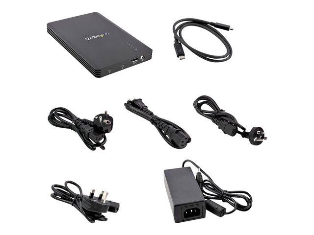 StarTech.com 4 Bay Thunderbolt 3 NVMe Enclosure, For M.2 NVMe Solid State Drives, 1x DisplayPort Video & 2x TB3 Downstream Ports, Up to 40Gbps, 72W Power Supply - 4 Bay M.2 SSD External Hard Drive Enclosure (M2E4BTB3) - Boitier externe - M.2 - M.2 NVMe Card / PCIe (NVMe) - Thunderbolt 3 - noir