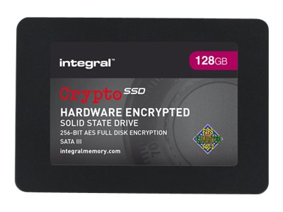 Integral Crypto SSD Hardware Encrypted FIPS 140-2 - SSD - chiffré - 128 Go - interne - 2.5" (dans un support de 3,5") - SATA 6Gb/s - mémoire tampon : 256 Mo - FIPS 140-2, AES 256 bits