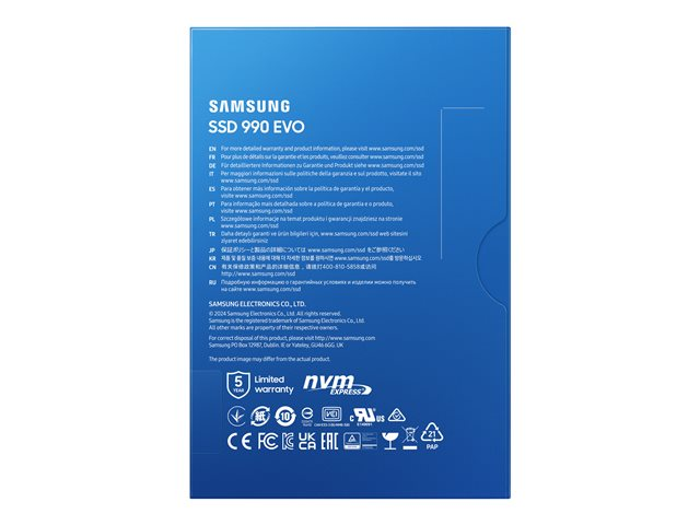 Le disque dur Samsung 990 EVO offre une grande capacité, des vitesses de transfert de données rapides et des fonctions de sécurité avancées pour une solution de stockage efficace. Avec une capacité de 2 To et des vitesses allant jusqu'à 5000 MBps en lecture et 4200 MBps en écriture, il améliore votre expérience informatique. Le disque utilise une interface PCI Express 5.0 x4 (NVMe) pour des transferts de données et un fonctionnement efficaces. La sécurité est prioritaire avec le cryptage matériel AES 256 bits et le cryptage TCG Opal 2.0, garantissant la protection de vos données. En outre, la protection Dynamic Thermal Guard permet d'éviter la surchauffe et de maintenir les performances pendant les tâches exigeantes. Adapté à un usage professionnel et personnel, le Samsung 990 EVO est conçu pour prendre en charge les environnements informatiques de haute performance.