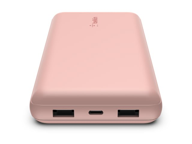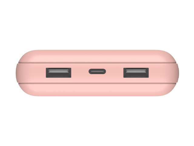 Belkin BOOST CHARGE - Banque d'alimentation - 20000 mAh - 15 Watt - 3 connecteurs de sortie (2 x USB, 24 pin USB-C) - sur le câble : USB, USB-C - rose gold BPB012BTRG